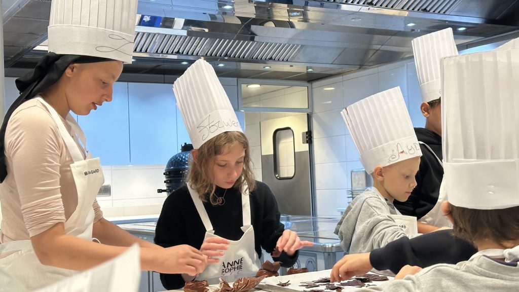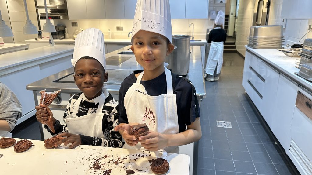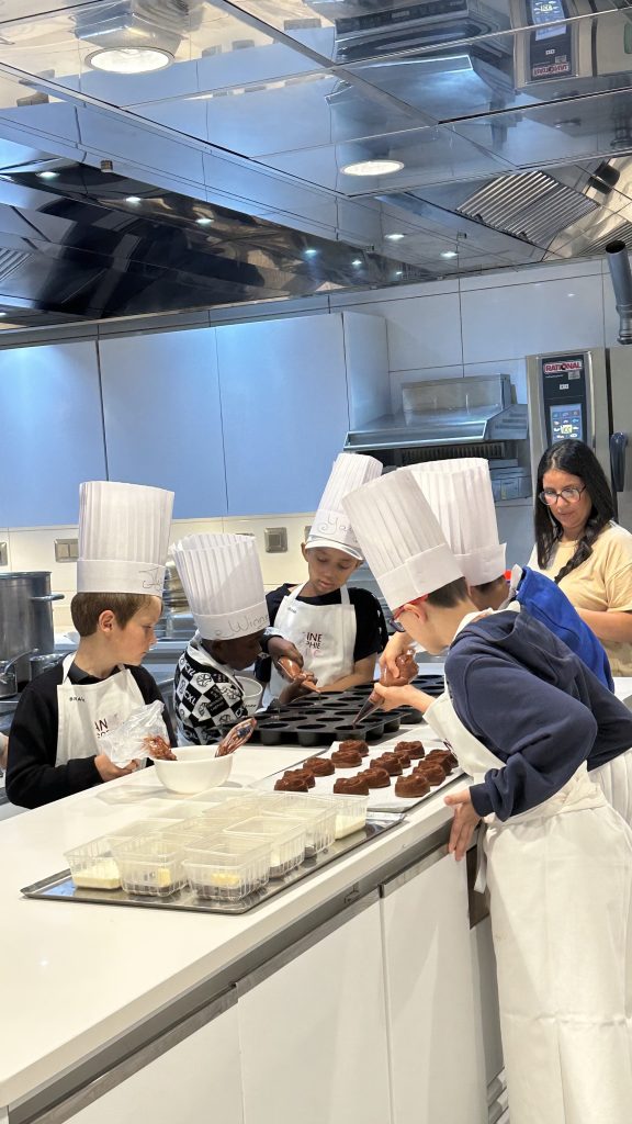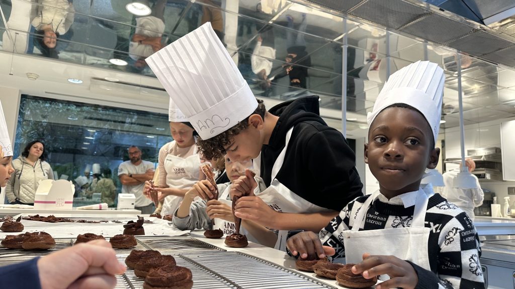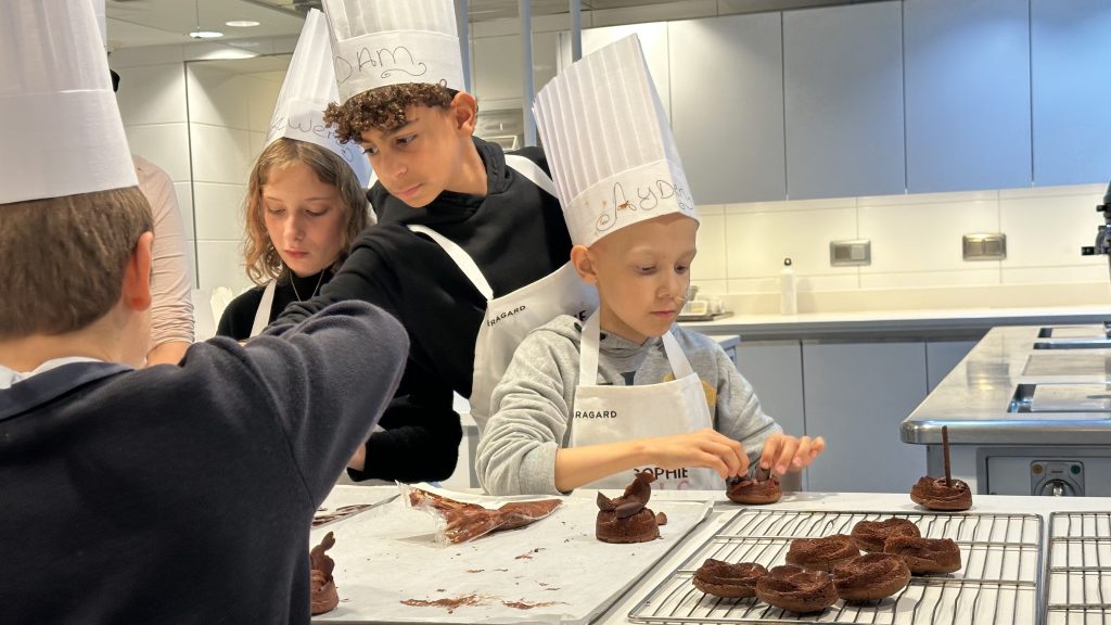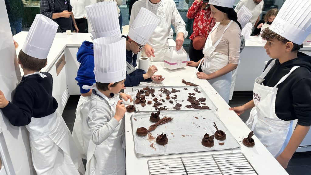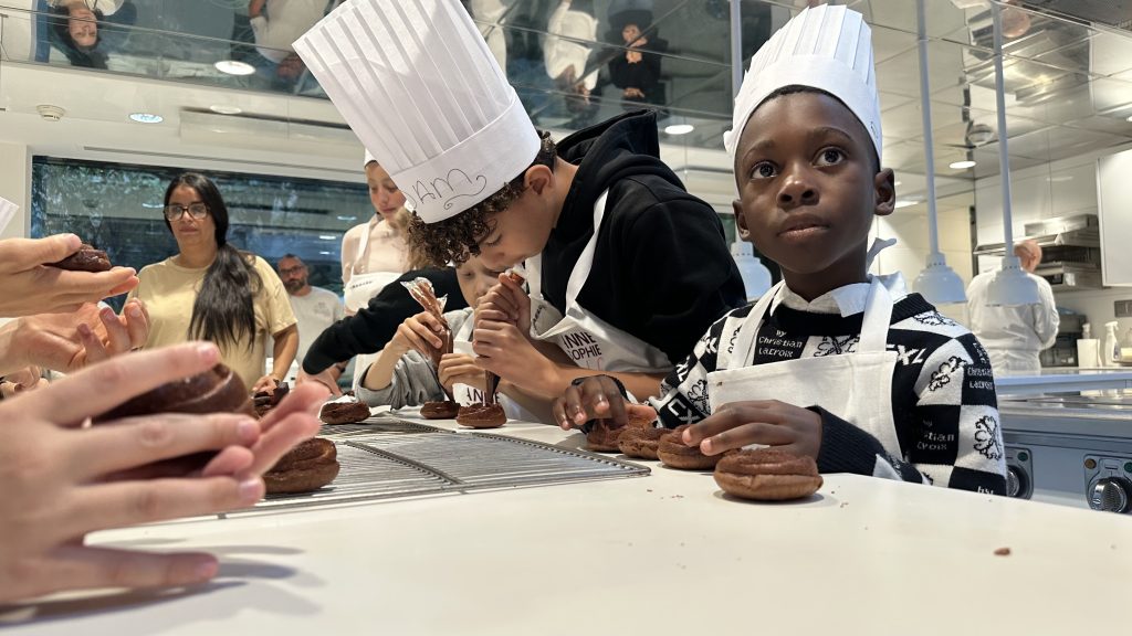 Sous la houlette du chef Aurélien et d’Odalrich, chef de partie en pâtisserie, les enfants ont enfilé toque et tablier après un accueil gourmand autour de pains au chocolat, madeleines, café et jus de fruits. Très vite, tout le monde s’est mis à la pâte ! Parents et enfants ont travaillé côte à côte dans une ambiance conviviale et complice. Les sourires illuminaient les visages, et les yeux brillaient autant chez les petits que chez les grands.