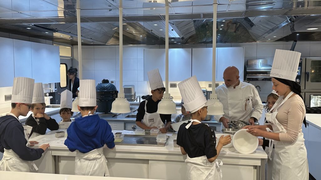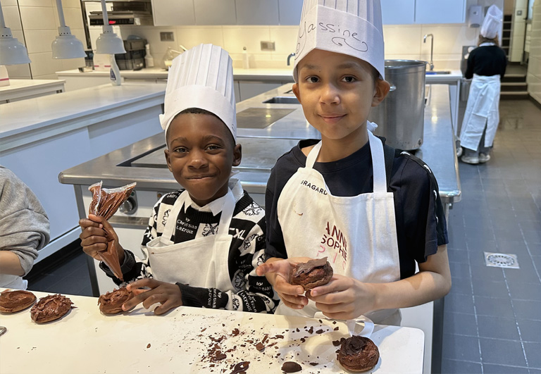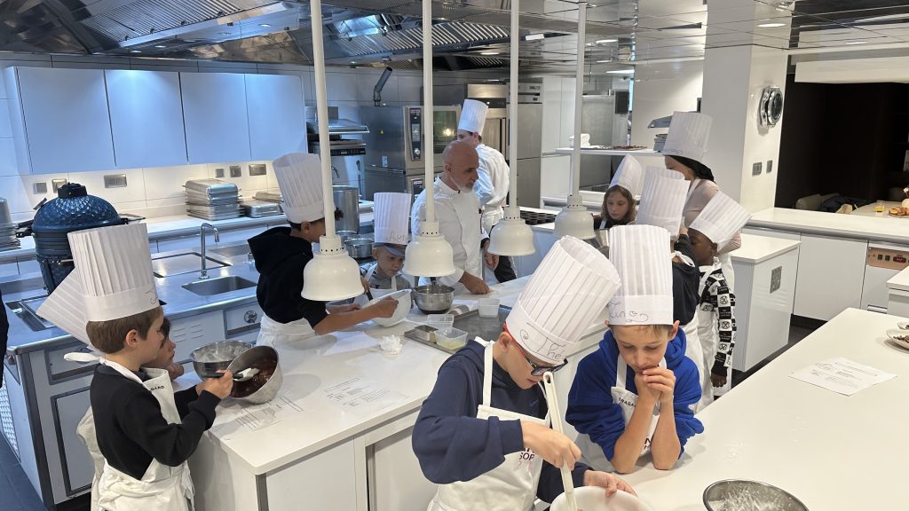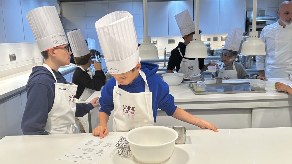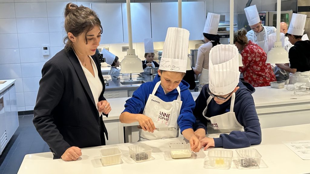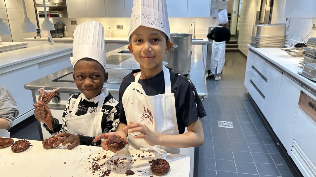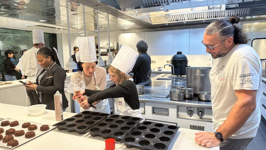 Sous la houlette du chef Aurélien et d’Odalrich, chef de partie en pâtisserie, les enfants ont enfilé toque et tablier après un accueil gourmand autour de pains au chocolat, madeleines, café et jus de fruits. Très vite, tout le monde s’est mis à la pâte ! Parents et enfants ont travaillé côte à côte dans une ambiance conviviale et complice. Les sourires illuminaient les visages, et les yeux brillaient autant chez les petits que chez les grands.